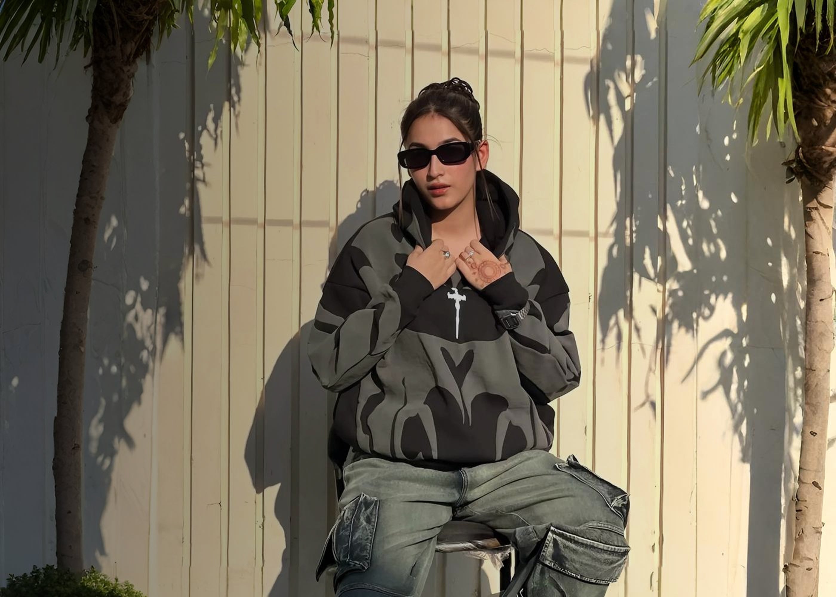 Tribal Shadow Depth Oversized Hoodie – Black | Indian Streetwear